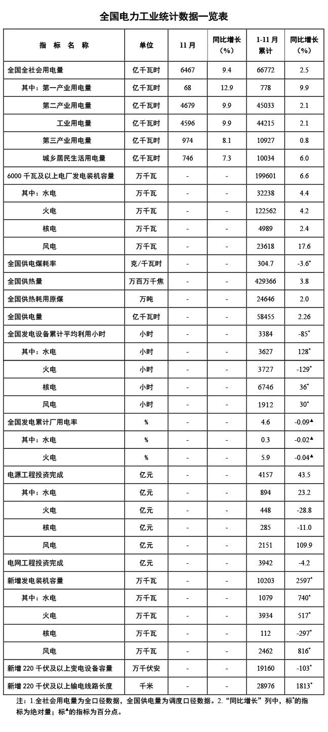 北極星智能電網(wǎng)在線訊:12月18日,國家能源局發(fā)布1-11月份全國電力工業(yè)統(tǒng)計(jì)數(shù)據(jù)。